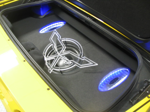 Another shot of the custom grille, illuminated amplifiers and TREO SSi12 subwoofer